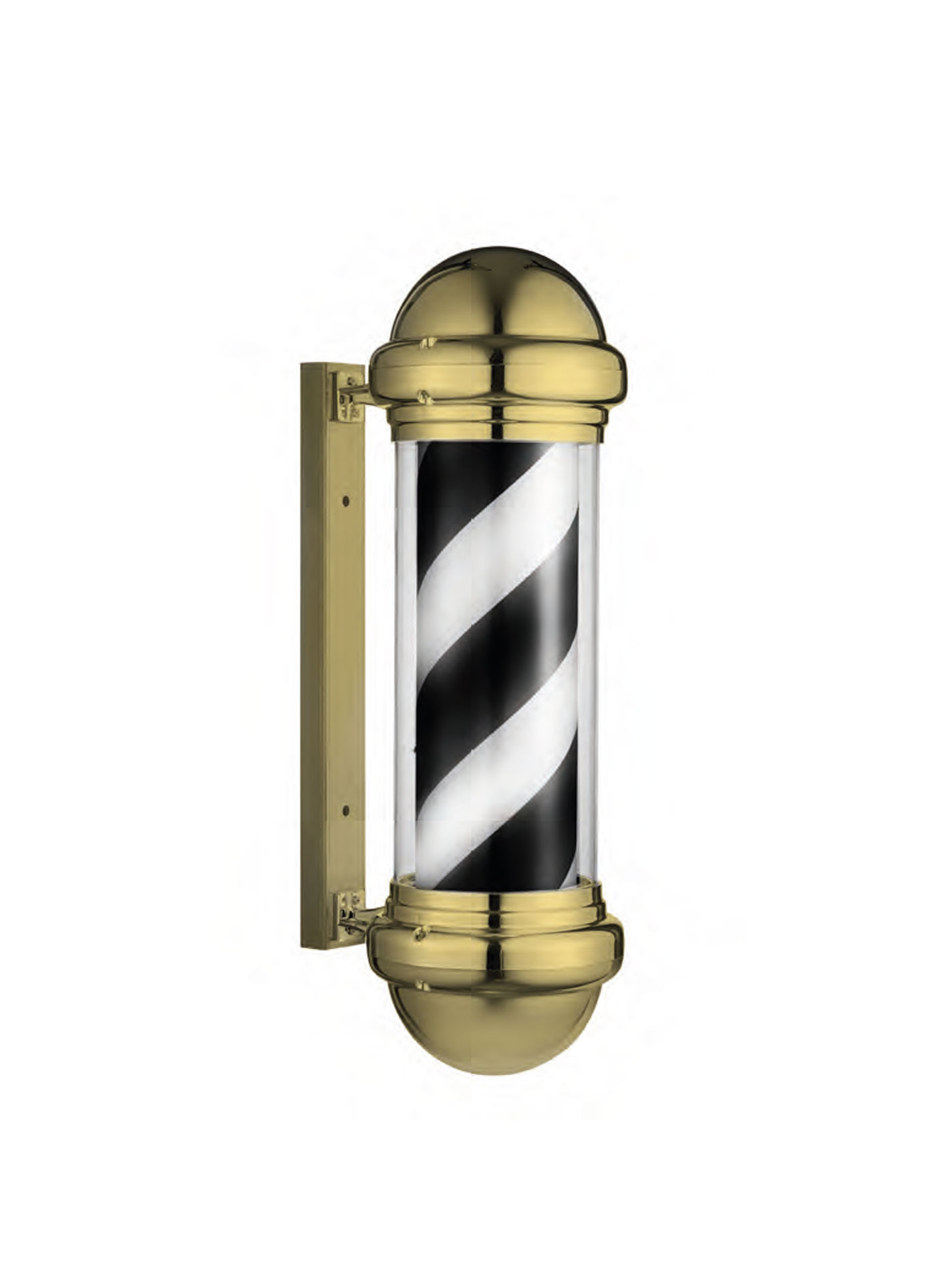 Polo decorativo para salones de barbería. Estructura elegante de color negro o dorado y film interior blanco y negro.